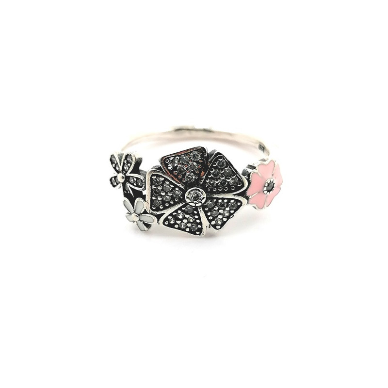 sortija de plata de ley con 4 flores esmalte