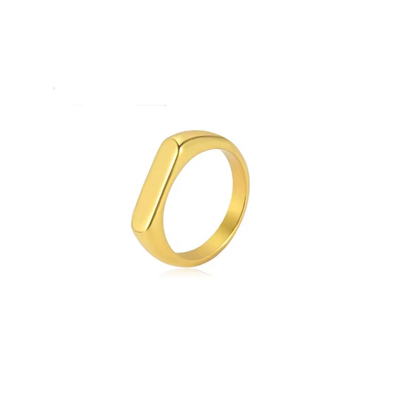 Anillo de acero inoxidable dorado sello rectangula