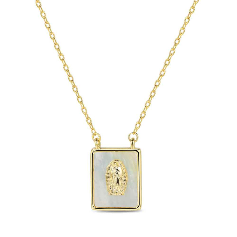 Collar de plata chapado cuadrado de nacar de 15 mm
