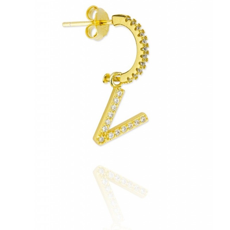 Pendientes de Plata de Ley en dorado INICIAL " V "