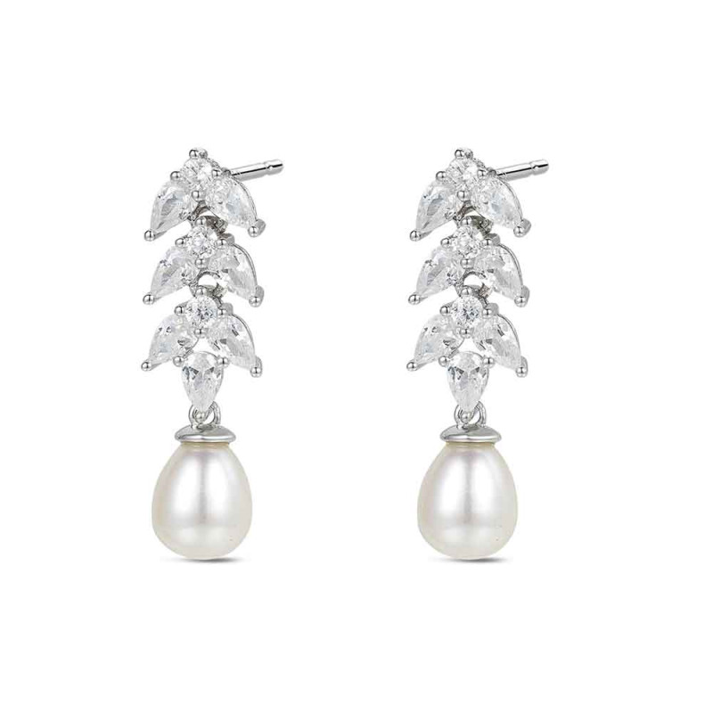 Pendiente de plata rodiado hojas de circonita 25