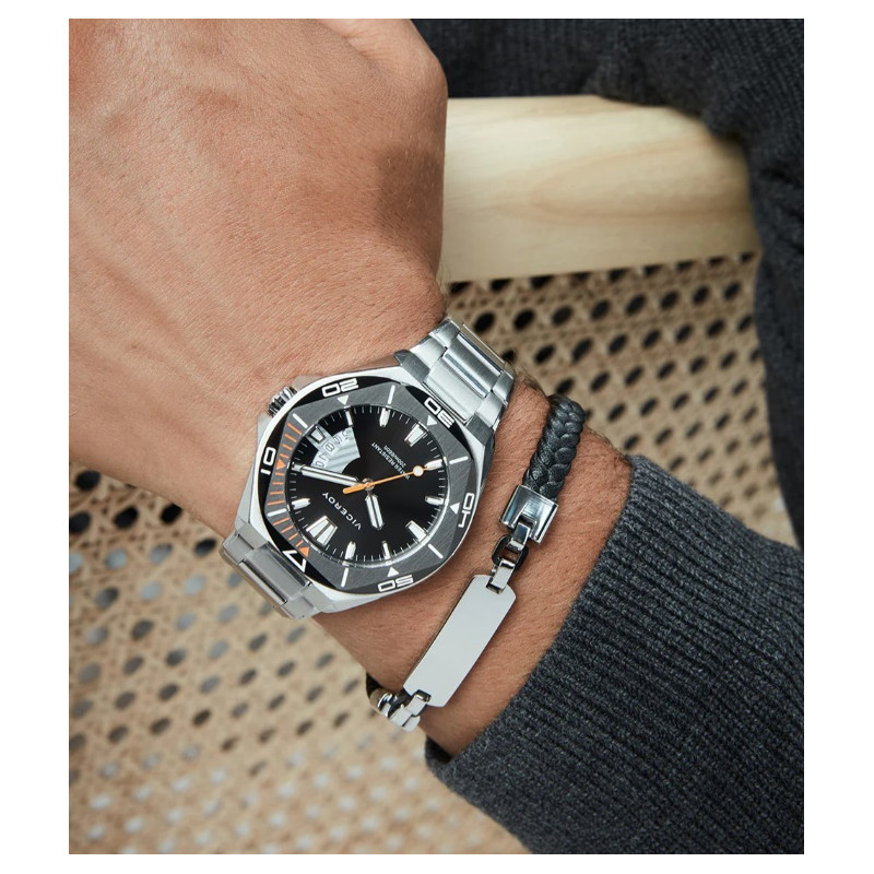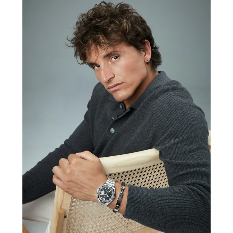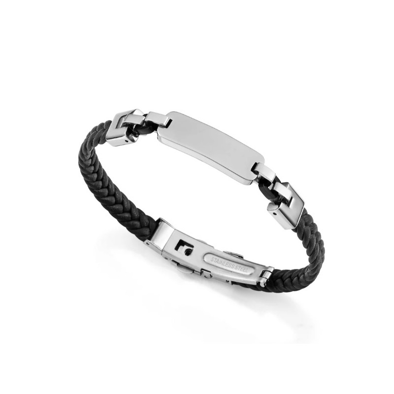 Una pulsera que destaca por su diseño audaz y elegante. Fabricada en acero con acabado IP negro, presenta una placa central que añade un toque de distinción, mientras que la piel trenzada negra ofrece un contraste sofisticado y atemporal. Su combinación de materiales crea una pieza robusta y moderna, perfecta para hombres que buscan un accesorio que combine fuerza y estilo. Con un largo de 21,5 cm, se ajusta cómodamente a la muñeca, convirtiéndola en un complemento ideal para cualquier ocasión. Una joya pensada para aquellos que valoran el diseño contemporáneo con un toque de sofisticación.