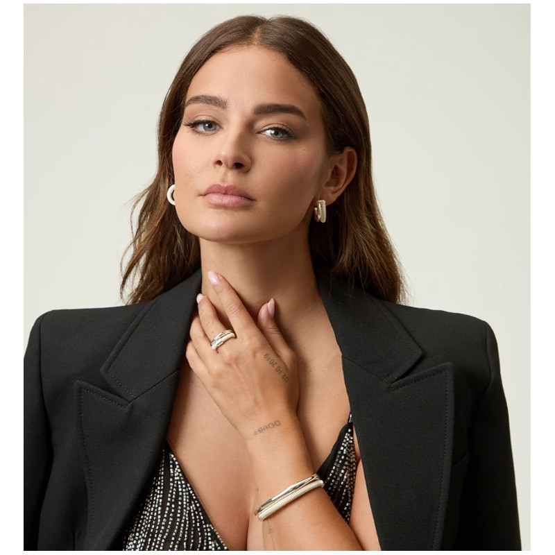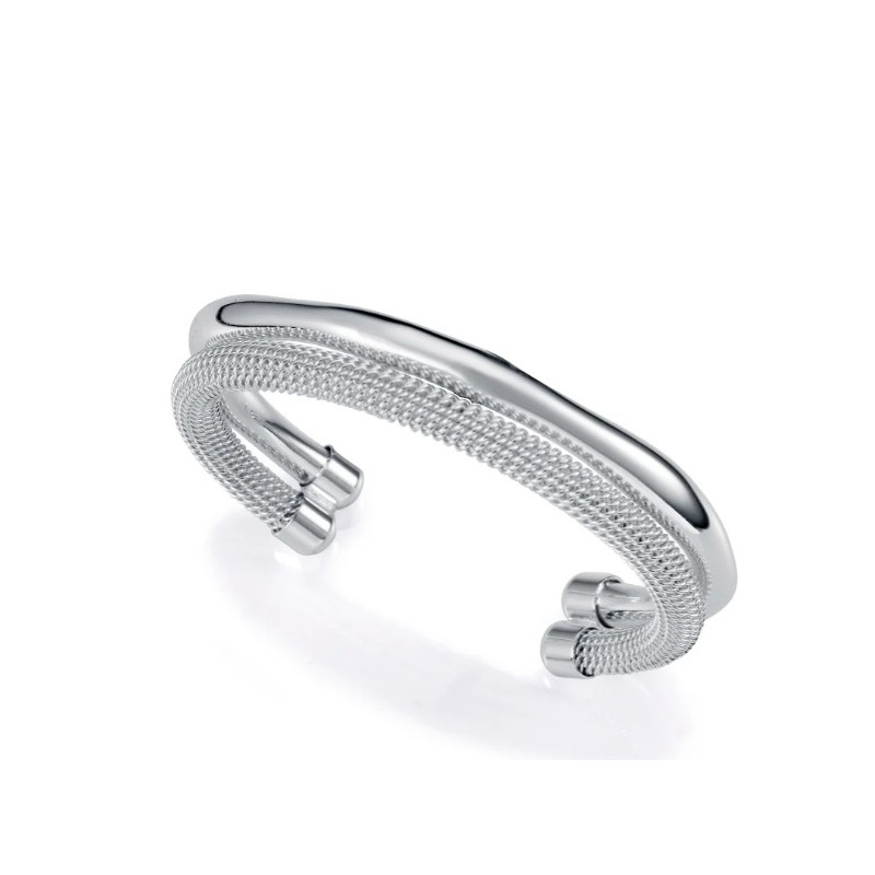 Esta elegante pulsera de acero chapado en plata 999 de la colección Laura Escanes cuenta con un diseño rígido doble, que combina dos acabados sofisticados: uno liso con brillo y otro con acabado esterilla. Con un diámetro máximo de 6 cm, se ajusta cómodamente al muñeco, ofreciendo un toque de estilo y distinción. Ideal para mujeres que buscan una joya moderna y versátil, perfecta para cualquier ocasión especial o para realzar su look diario. Diámetro 6 cm.