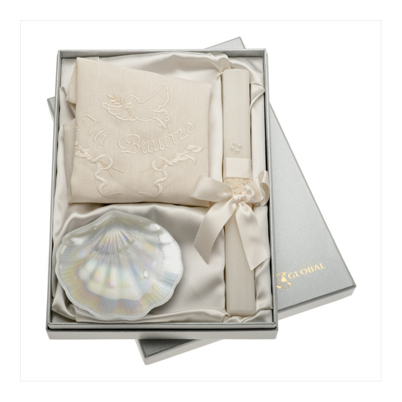 SET BAUTISMO VELA PAÑO CONCHA