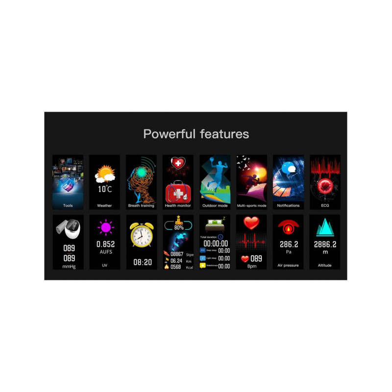· Pasos, distancia recorrida, calorías consumidas. ECG (Electrocardiograma)