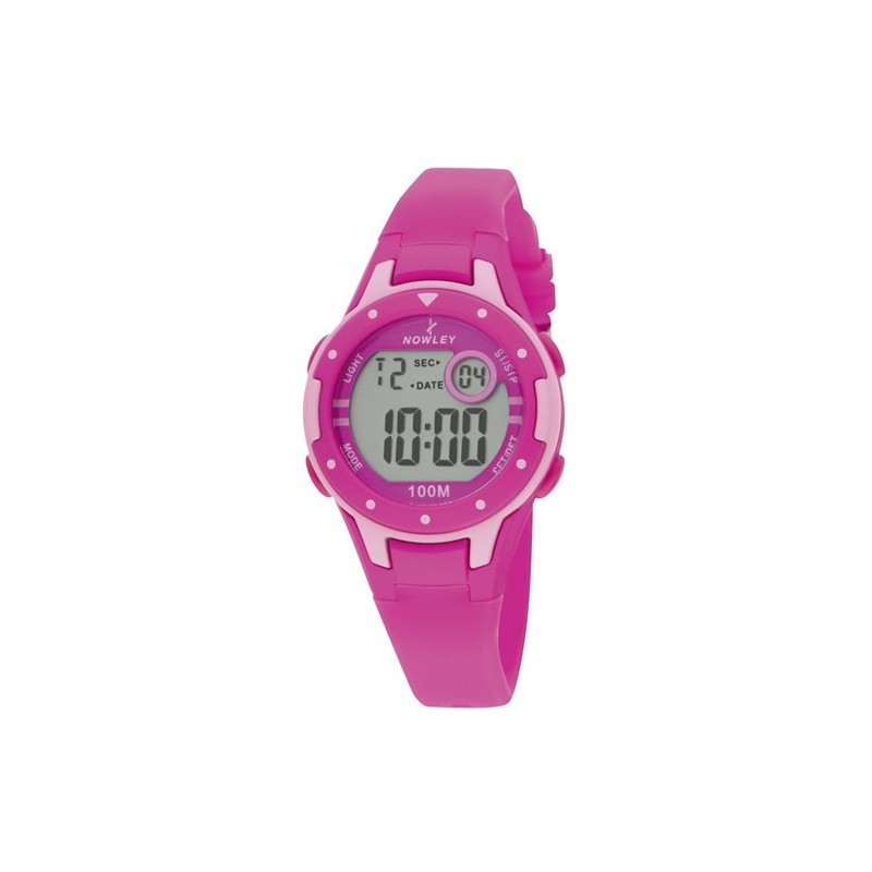 Reloj Nowley Racing juvenil digital 8-6243-0-4. Caja de policarbonato con tapa de acero con tornillos y cristal plex. Maquinaria japonesa de cuarzo. Pantalla LCD, retroiluminado, AM/PM o 12/24 horas. Correa de caucho con hebilla de acero inoxidable.