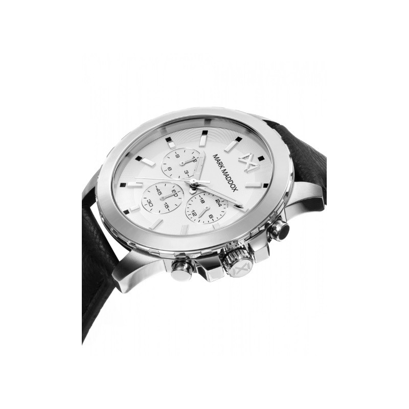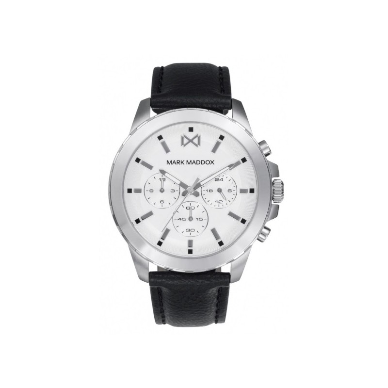 Reloj de Hombre Mark Maddox Marais multifunción con la caja de acero, la esfera y los índices en plateado, los contadores están localizados a las 3, 6 y 9 y correa es de piel sintética negra