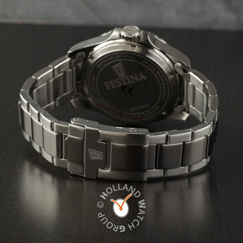 Este reloj marca Festina tiene una caja de Inox con un diámetro de 44 mm y cuenta con una correa de metal. Dentro de la caja se encuentra un mecanismo de Miyota de alta calidad el cual esta protegido por un cristal Zafiro.