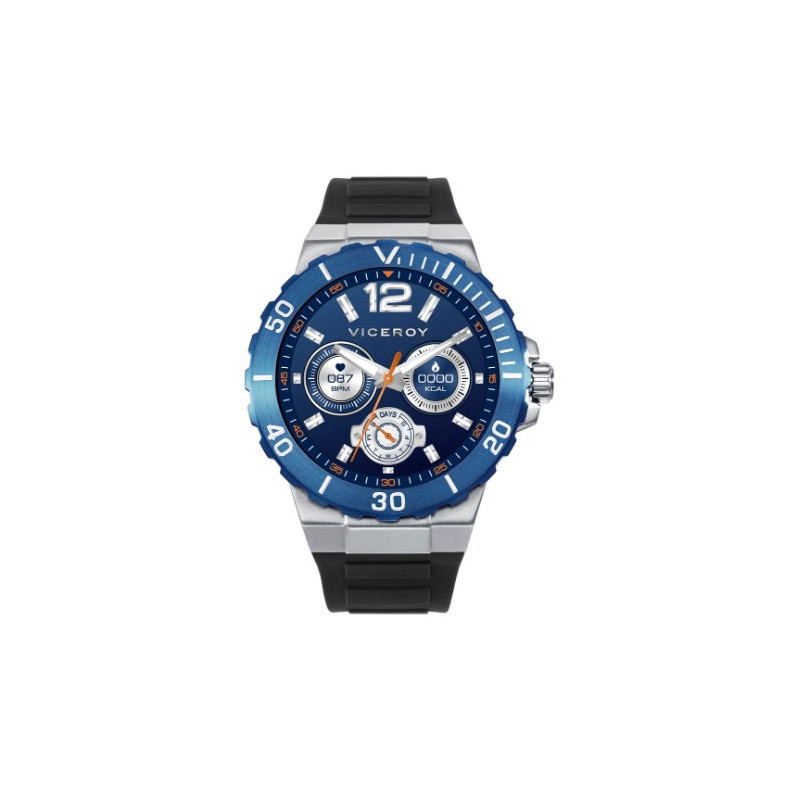 El smartwatch de hombre Viceroy SMART PRO combina un diseño moderno con tecnología avanzada para ofrecerte una experiencia completa. Su caja de acero con bisel IP en tono azul y correa de silicona negra le dan un toque elegante y deportivo, ideal para cualquier ocasión. La pantalla táctil permite elegir entre varias esferas propias, adaptando el estilo del reloj a tus preferencias. Compatible con teléfonos Android 5.0 o superior e iOS 10 o superior, te permite realizar y recibir llamadas, así como recibir notificaciones y mensajes. Además, incorpora funciones avanzadas para medir pulsaciones, oxígeno en sangre, contar pasos y distancia recorrida. También ofrece gestión de deportes, cronógrafo, monitoreo de calidad del sueño y control de la música de tu móvil. Este modelo de Viceroy SMART PRO es la elección ideal para el hombre que busca un smartwatch versátil, funcional y con un diseño refinado para acompañar su día a día.