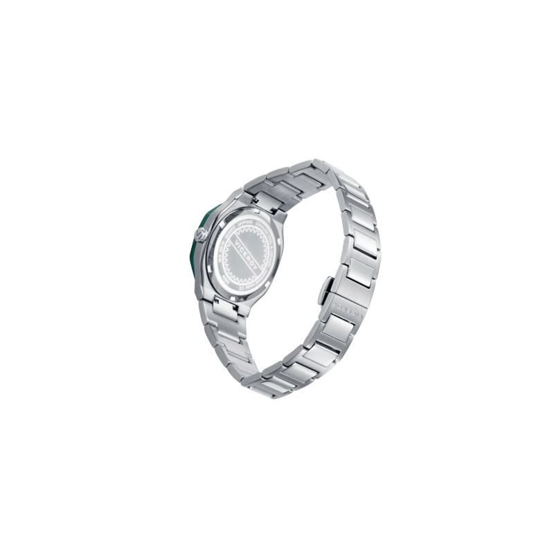 Este sofisticado reloj de la colección Laura Escanes para mujer es un símbolo de elegancia y modernidad. Su diseño se caracteriza por una caja de acero extraplana que incorpora un delicado bisel de cerámica en un vibrante tono verde, aportando un toque de frescura y exclusividad. La esfera verde se fusiona de manera armoniosa con índices y agujas en color plata, creando un contraste refinado que realza su estilo. El cristal de zafiro proporciona durabilidad y protección, asegurando una claridad impecable. El brazalete de acero añade un toque clásico, garantizando un ajuste cómodo y seguro para cualquier ocasión. Con un práctico calendario, este reloj no solo es un complemento de moda, sino también una pieza funcional y versátil. Este modelo de la colección Laura Escanes es perfecto para mujeres que buscan destacar con una joya que combina sofisticación, estilo y un diseño cuidadosamente elaborado. Sumergible 10 ATM.