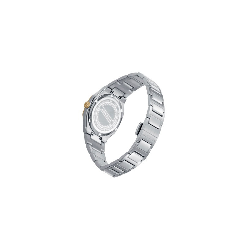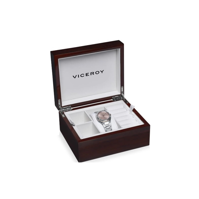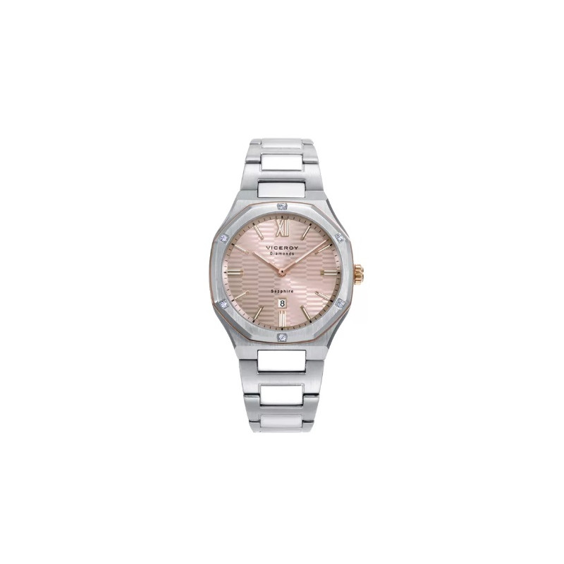 Este exquisito reloj de la colección Laura Escanes para mujer es la definición de lujo y elegancia moderna. Diseñado con una caja de acero extraplana que incorpora un doble bisel en acero e IP rosa, adornado con deslumbrantes diamantes creados, este modelo destaca por su sofisticación y brillo. La esfera en tono rosa, delicada y femenina, se combina perfectamente con índices y agujas en color IP rosa, creando una armonía visual que resalta su exclusividad. El cristal de zafiro proporciona una resistencia duradera y un acabado impecable, mientras que el brazalete de acero añade un toque robusto y refinado al conjunto. Además, cuenta con un calendario que aporta funcionalidad sin sacrificar su diseño estilizado. Este reloj de la colección Laura Escanes es ideal para mujeres que buscan una pieza única, capaz de combinar lujo, estilo y una esencia moderna en cada detalle. Sumergible 10 ATM.