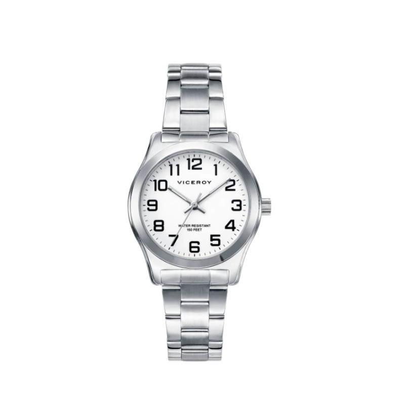 Este reloj de mujer Viceroy combina elegancia y simplicidad con su diseño atemporal. Presenta una caja y brazalete de acero, proporcionando durabilidad y un aspecto sofisticado. La esfera blanca destaca por su claridad y minimalismo, facilitando la lectura del tiempo. Los índices y agujas en tono plateado añaden un toque de refinamiento y armonizan perfectamente con el diseño general. Este reloj es ideal para la mujer que busca un accesorio versátil y elegante, adecuado tanto para ocasiones formales como informales.