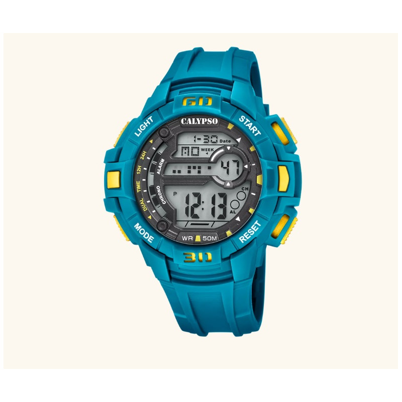 La colección de relojes digitales Calypso Flash Time destaca por su diseño juvenil, deportivo y resistente, pensada para quienes buscan funcionalidad y estilo a partes iguales. Estos modelos combinan colores vivos con una estética robusta, ideal para el día a día y actividades al aire libre.