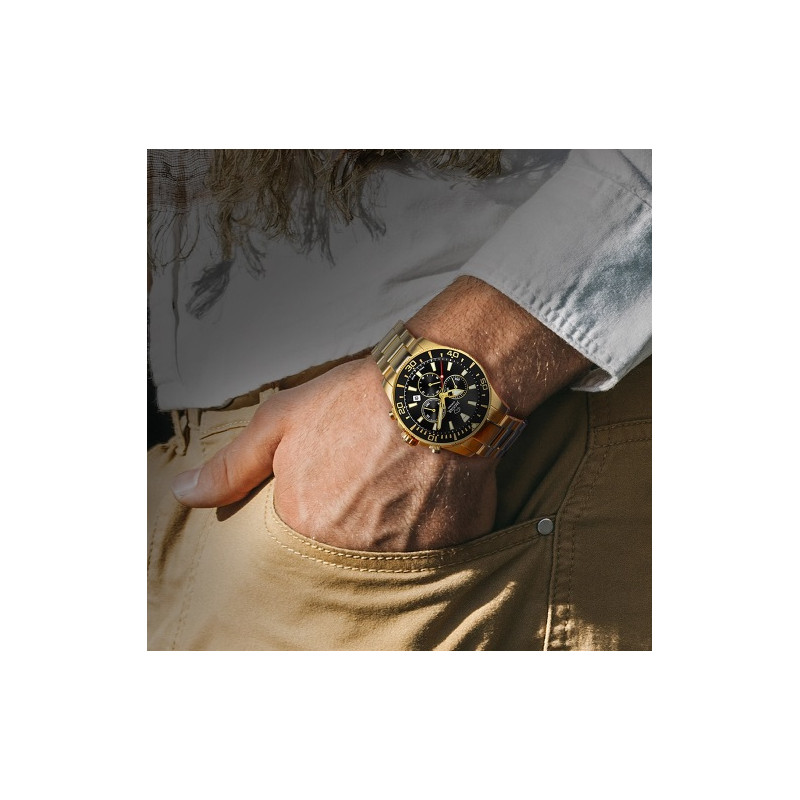 El modelo J864/3, en color negro, con esfera negra e índices dorados, ofrece una legibilidad perfecta gracias a su cristal de zafiro.