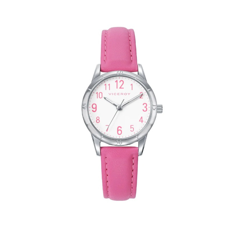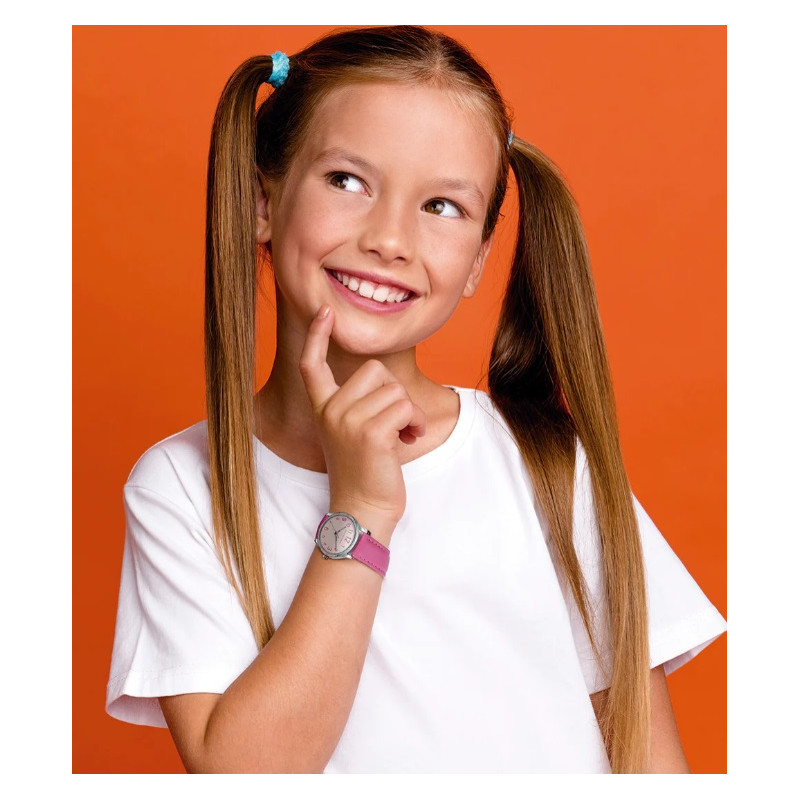 Este encantador reloj de niña, diseñado especialmente para su Primera Comunión, combina dulzura y elegancia en cada detalle. Su caja de acero resistente y correa de piel rosa aportan un toque delicado y femenino, ideal para una ocasión tan especial. Un regalo inolvidable para conmemorar un día único y lleno de significado.